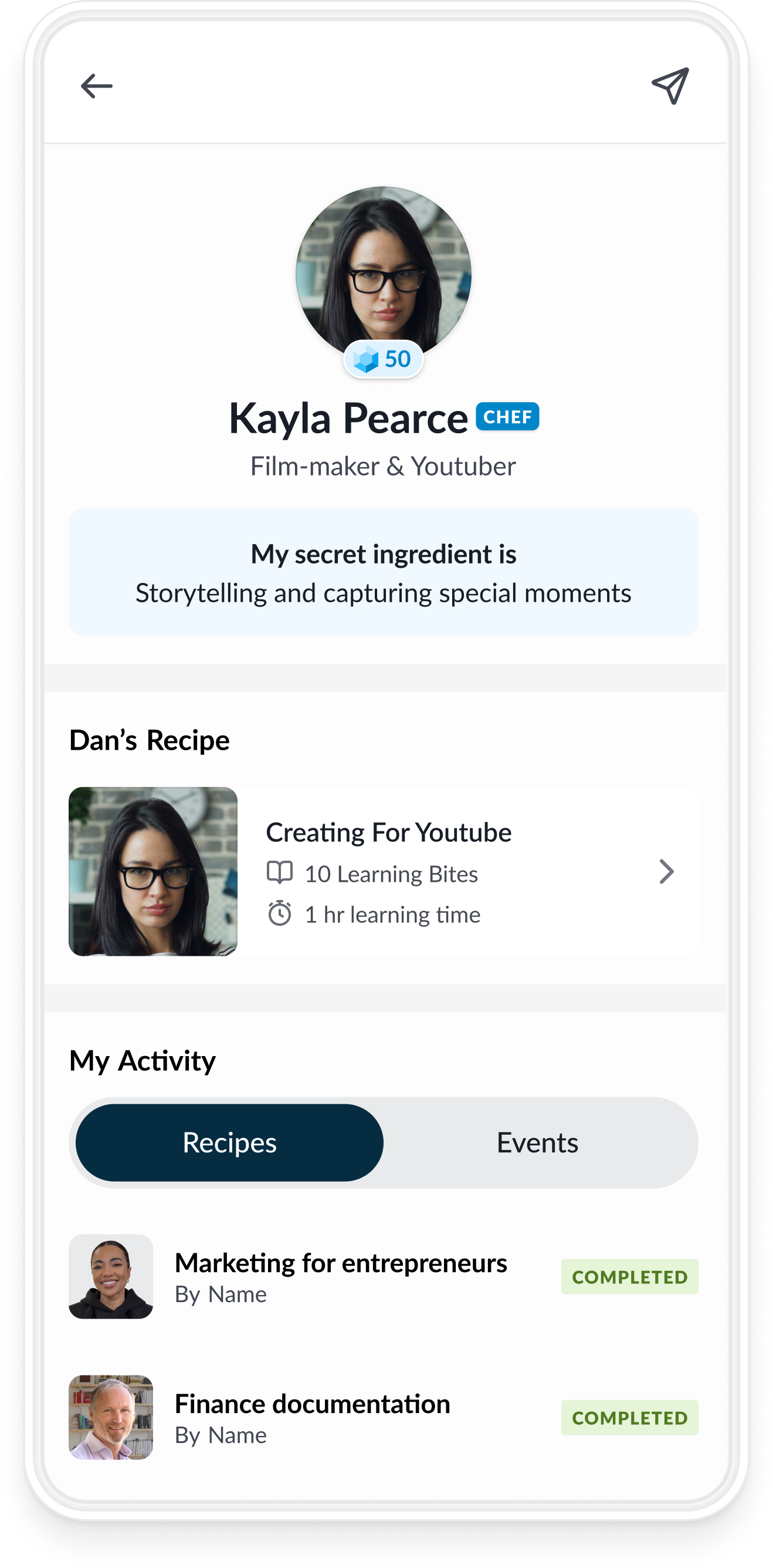 See what others are learning and which events they’re attending. Stay inspired by the momentum around you.